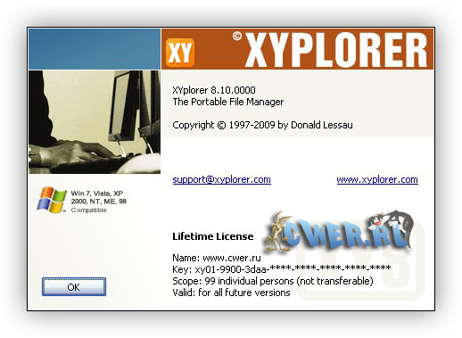 XYPlorer - продвинутый файловый менеджер, работающий под Win98/NT/ME/2000/XP/Vista, достойная замена проводнику Windows, с поддержкой вкладок. Мощный поисковый механизм; предосмотр мультимедийных файлов , графики, аудио, видео; HEX и ASCII просмотрщик файлов; работа с mp3-тегами; широкие возможности для визуализации (выделение цветом избранных папок и пр.); формирование фильтров отображения файлов; экспорт информации о файлах в CSV формат и многое другое. XYplorer не оставляет записей в реестре, поэтому возможна работа со сменных носителей, например с флеш носителях.