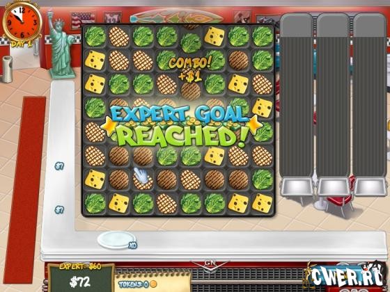Посетите новый фермерский рынок для покупки новых компонентов и испульзуйте музыкальный автомат, чтобы ваши клиенты чувствовали себя как дома. Игра представляет собой комбинацию три в ряд и тайм-менеджера в 80 аппетитных уровнях.