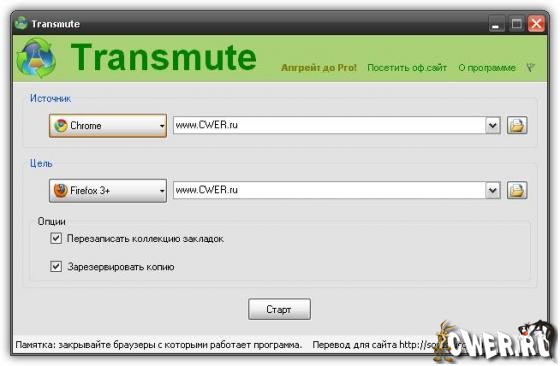 Transmute экспортирует закладки из одного браузера в другой, поэтому разбираться с их настройками не придется. С помощью Transmute закладки передаются из одной версии Firefox в другую (поддерживается как 2, так и 3), в Internet Explorer, Google Chrome и Opera. Нужно лишь выбрать исходный и целевой браузеры, и программа автоматически определит расположение закладок в каждом из них. А затем нажать на кнопку Export. При необходимости, Transmute переименует целевую папку и добавит к названию временную метку, что пригодится при создании резервных копий.