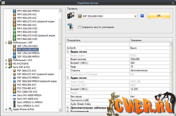 - MP4 файлы для форматов iPod/iPhone/PSP/BlackBerry