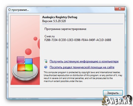 Скачать Auslogics Registry Defrag 5.5.20.520 (3 МБ):