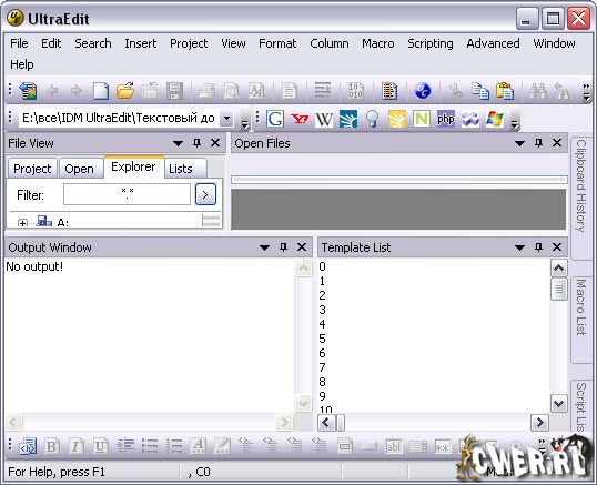 UltraEdit - программа является многофункциональным многооконным редактором с гибкой и мощной системой настроек, также имеется встроенный FTP клиент. Программа предназначена для редактирования текстовых, HEX и HTML файлов, размером до 2 GB. Имеется подсветка синтаксиса при написании программ на C/C++, VB, HTML, Java, Perl, FORTRAN и LaTex. Также, предусмотрена возможность подключения дополнительных словарей с синтаксисом других языков, библиотек тэгов и макросов. Имеется огромное количество дополнительных функций и настроек.