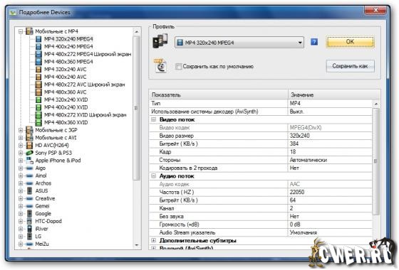 - MP4 файлы для форматов iPod/iPhone/PSP/BlackBerry