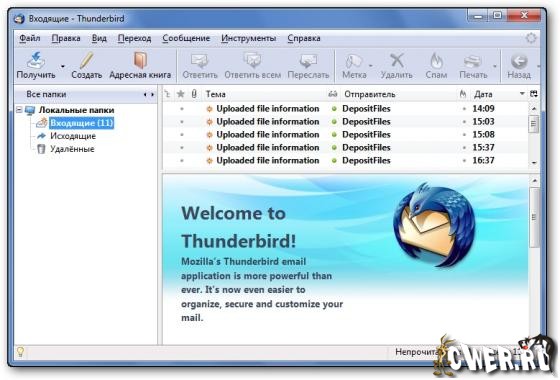 Thunderbird - простая и удобная бесплатная программа для работы с электронной почтой от Mozilla. Программа поддерживает протоколы SMTP, POP3, IMAP и RSS. Имеет встроенный HTML редактор, который создает довольно компактный код, что в свою очередь уменьшает итоговый размер отправляемых писем в несколько раз. Поддерживает всевозможные кодировки, расширяется за счет дополнительных модулей и фильтрует рекламу, а так же нежелательную корреспонденцию. Интерфейс программы основан на технологии XUL, разработанной Mozilla Foundation, в результате чего интерфейс на всех платформах выглядит так же, как у приложений, разработанных для этой конкретной платформы. Интерфейс программы прост и удобен в использовании, поддерживает смену скинов. Во второй версии программы включено множество новых возможностей, помогающих вам лучше управляться с бурным потоком информации, устремляющимся в ваш почтовый ящик и быть в курсе последних событий.