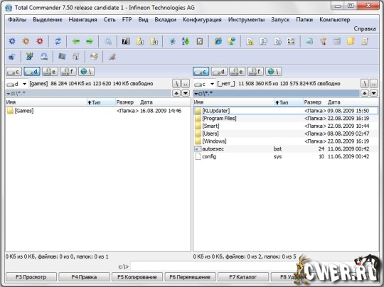 Total Commander - популярный файловый менеджер с практически всеми необходимыми для таких программ функциями. Кроме всех функциональностей, характерных для файловых менеджеров, в Total Commander встроены очень удобные просмотрщики для мультимедиа и графических файлов, распаковщики ZIP, ARJ, LZH, RAR, UC2, TAR, GZ, CAB, ACE и дополнительные dll для других архивных файлов; при помощи встроенного ftp-клиента можно скачивать/закачивать файлы в несколько потоков, есть докачка, поддержка www-прокси при работе с ftp и есть даже такая функция, как подключение-скачивание-отключение в заданное время к заданному ftp. Не будут лишними и такие функции, как UUE/MIME/XXE кодирование/декодирование и разрезка/склейка длинных файлов, а также множество других функций, крайне необходимых для работы с файлами.