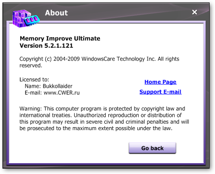Memory Improve Ultimate - утилита, которая позволяет увеличить быстродействие вашей системы за счет освобождения оперативной памяти. Имеется возможность установки минимального размера свободной оперативной памяти, при превышении которого запустится модуль и попытается удалить из оперативной памяти лишние процессы. Кроме этого, имеется возможность просмотра запущенных процессов, наблюдение за нагрузкой на ЦП и множество других полезных настроек.