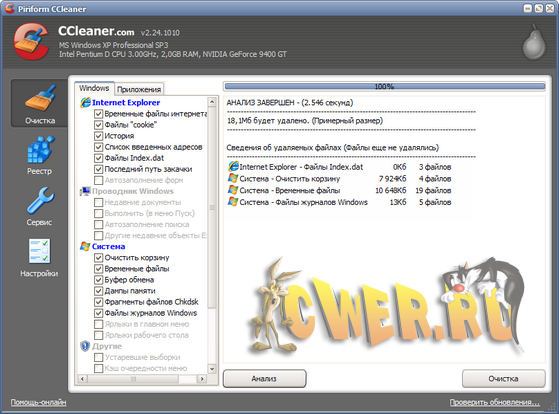 Скачать программу CCleaner 2.24.1010 (3,1 МБ):