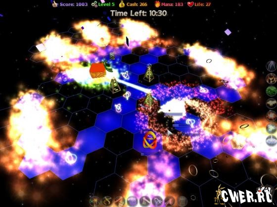 Как обычно, строим оборонительные башни так, чтобы враг не проник на вашу территорию. Стройте башни, улучшайте их характеристики, используйте магию против различных противников. В игре яркое абстрактное оформление, качественная 3D-графика, а также собственный редактор уровней.