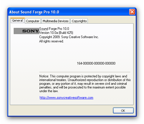 Скачать программу Portable Sony Sound Forge Pro 10.0a Build 425 (151,11 МБ):