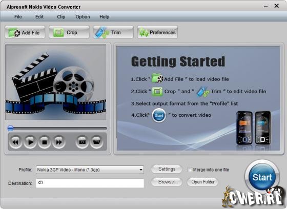 Aiprosoft Nokia Video Converter обеспечивает отличное решение для конвертирования видео файлов в формат мобильного телефона Nokia с наилучшим качеством изображения и звука. Данное программное обеспечение поддерживает почти все исходные форматы, включая WMV, MPEG, MPG, ASF, MOD, FLV, SWF, RM и HD files, etc.Поддерживаются следующие модели Nokia: N96, E75, E71, E63, N95, N75, N73, 5300, 6555, etc.