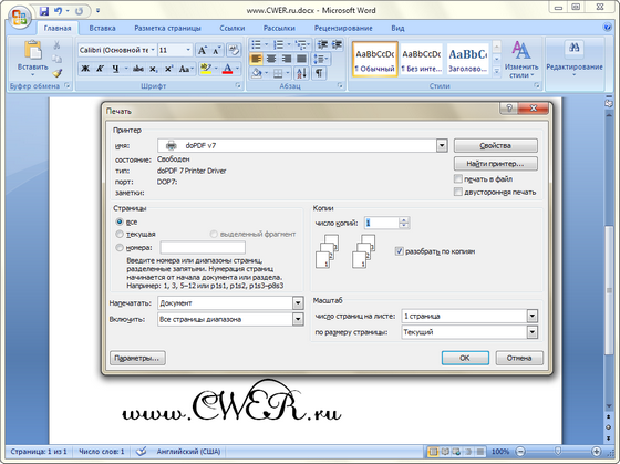 doPDF устанавливается как виртуальный PDF драйвер для принтера, так что после успешной установки он появляется в списке ваших Принтеров и Факсов. Для создания PDF файла, вам лишь нужно распечатать документ на бесплатном doPDF конвертере. Откройте документ (с помощью Microsoft Word, WordPad, NotePad или любого другого приложения), нажмите Печать и выберите doPDF принтер. Программа спросит вас, куда сохранить PDF файл и после того как она закончит запись файла, PDF файл автоматически откроется в вашей стандартной программе для просмотра PDF файлов.