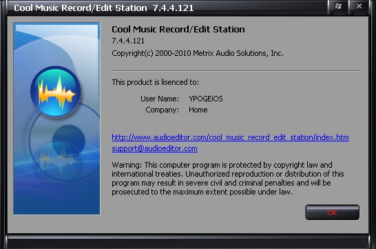Cool Music Record/Edit Station - профессиональный цифровой аудио-редактор, который позволит вам выполнить различные операции с аудио файлами: резать, копировать и вставлять (с неограниченным применением функции отмена), перемешивать треки (mix), добавлять различные эффекты к аудиозаписям. Программа не только записывает и воспроизводит звуки, но и позволяет импорт и экспорт аудио файлов различных форматов (WAV, AIFF, MP3 и OGG и т.д.).