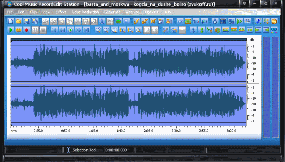 - Редактирование аудио файлов с визуальным контролем (вырезать, копировать, удалить выбранное, удалить тишину, вставка, вставка Mix, Mix из файла, редактирование канала).