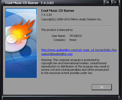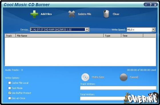Cool Music CD Burner - представляет собой мощный и простой в использовании инструмент для прожига аудио CD. Cool Music CD Burner позволяет создавать свои собственные музыкальные компакт-диски, которые могут быть воспроизведены в любом стандартном плеере. Поддерживает следующие форматы: MP3, WAV, OGG и WMA файлы. Cool Music CD Burner имеет простой и удобный в работе интерфейс, высокое качество записи без каких либо искажений, поддержка большинства современных пишущих приводов.