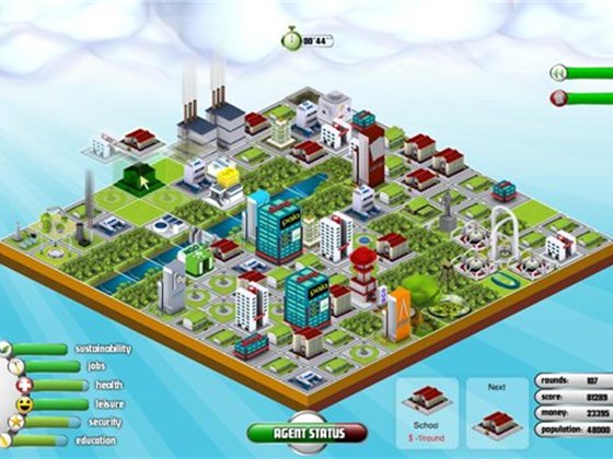 В игре присутствует смешение жанров: тетрис 21-го века к которому присовокупили Simcity. Нужно правильно (с точки зрения экологии и урбанистики) расставить падающие с неба здания.