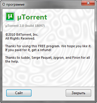 Скачать программу µTorrent 2.0 Build 18097 Stable (0,8 МБ):