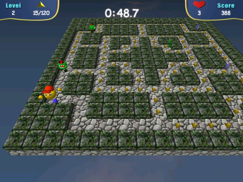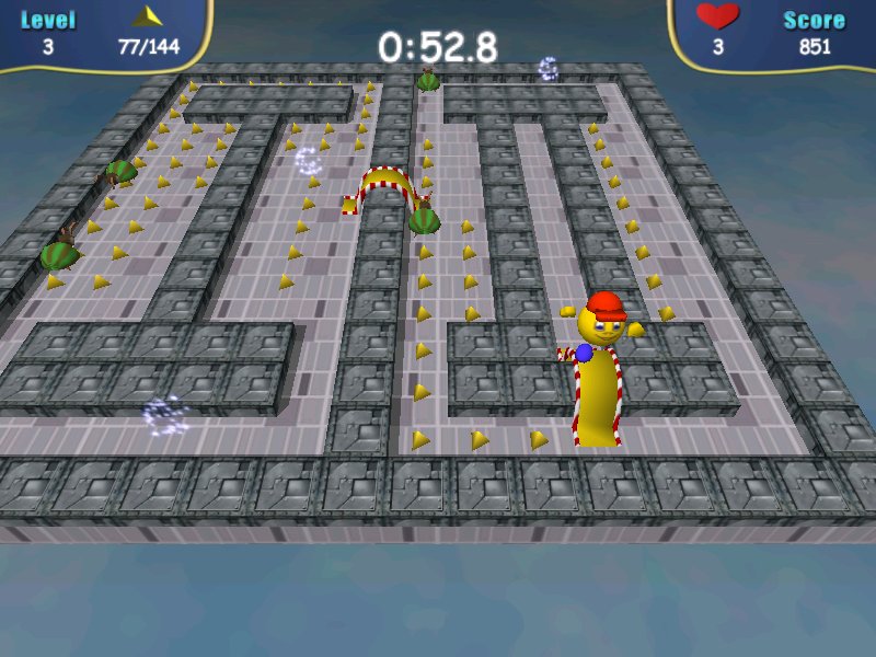 Добро пожаловать в Небесный лабиринт! Необычный 3D лабиринт и анимированные персонажи отличают этот римейк Пакмана от других аркадных игр... Проведите вашего героя через лабиринт и соберите все кристаллы, но будте осторожны: ваши враги попытаются остановить вас. Полная версия включает 80 лабиринтов с защитными щитами, бонусами заморозки, волшебными мостами и другими фичами. Вам понравятся эффекты и веселая музыка в игре.