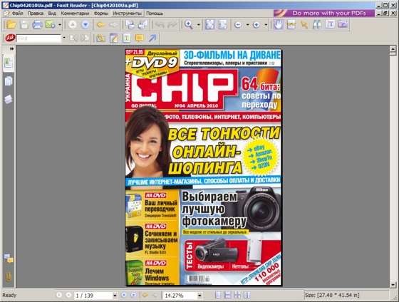 Foxit Reader Pro - компактная профессиональная и быстро работающая программа для просмотра документов формата PDF, не требующая наличия большого и поэтому медленно запускающегося Adobe Reader. Позволяет выделять и копировать текст в буфер обмена, а также производить поиск по тексту. Нормально работает с русским языком.