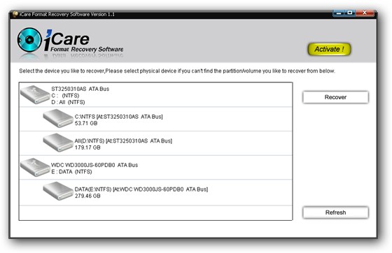 iCare Format Recovery - удобная программа для восстановления удаленных данных с жестких дисков, внешних жетских дисков, sd карт, карт памяти и USB Flash накопителей. Кроме того, программа поможет восстановить файлы с нечитаемого, удаленного, поврежденного раздела диска, если поврежден загрузочный сектор или после вирусной атаки.