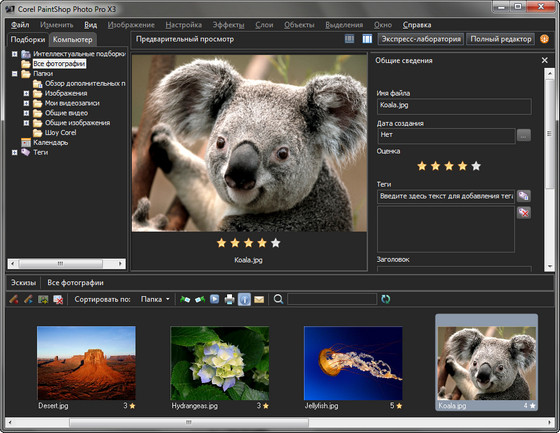 PaintShop Photo Pro X3 — самый оправданный способ улучшения фотографий и создания изображений профессионального качества. Эта программа для редактирования фотографий, которая теперь включает все средства для обработки файлов RAW, позволяет централизованно настраивать, редактировать и совместно использовать цифровые фотографии, а также управлять ими. Новые инструменты управления помогут ускорить упорядочение, отбор, маркировку и сортировку фотографий. Можно выполнить коррекцию фотографий автоматически в усовершенствованной экспресс-лаборатории или же воспользоваться полным набором средств для расширенного редактирования. После этого можно загрузить фотографии на сайты Flickr, Facebook® и YouTube, создать высококачественные фотоальбомы и проекты, распечатать фотографии, отправить их по электронной почте или выполнить резервное копирование на диск. Весь процесс работы с фотографиями в одном высокопроизводительном пакете.