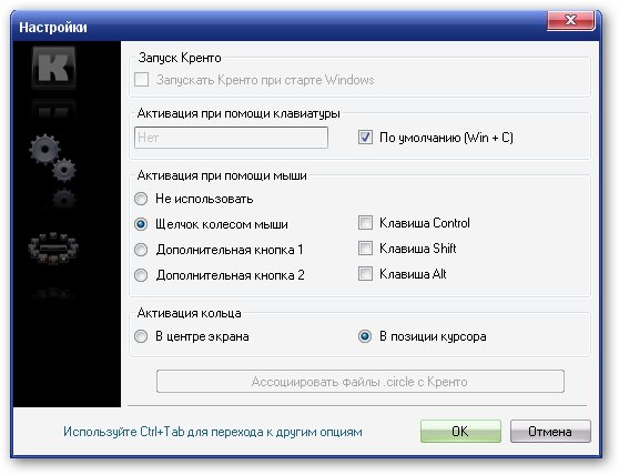 Вы можете визуализировать Krento Stones Circle нажатием колеса мыши или "Windows" + C комбинаций клавиш. Можно также дважды нажать на Krento Пульсар-кнопку, находящуюся в нижнем правом углу экранаи, проявляющуюся при наведении указателя мыши.