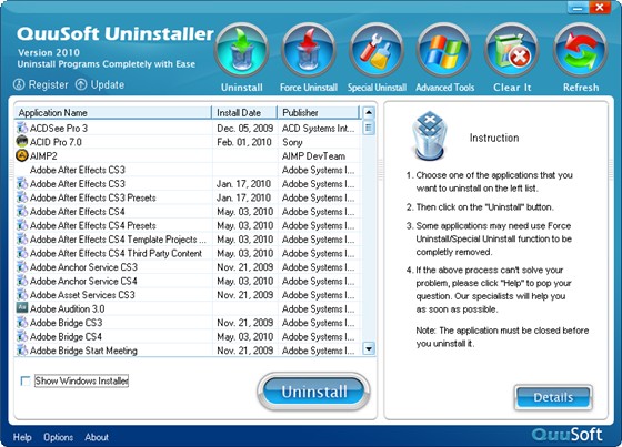 QuuSoft Uninstaller v2010.1.3