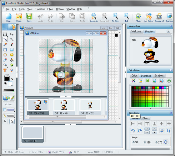 IconCool Studio - программа для создания и редактирования иконок. Утилита позволяет также импортировать и экспортировать иконки, содержит значительное число художественных инструментов для создания и редактирования иконок стандартных и специальных размеров. С помощью IconCool Studio можно создавать значки любых размеров, с глубиной цвета вплоть до 32bit True Color, создавать полупрозрачные иконки, экспортировать иконочные картинки в Photoshop, редактировать анимационные GIF файлы.
