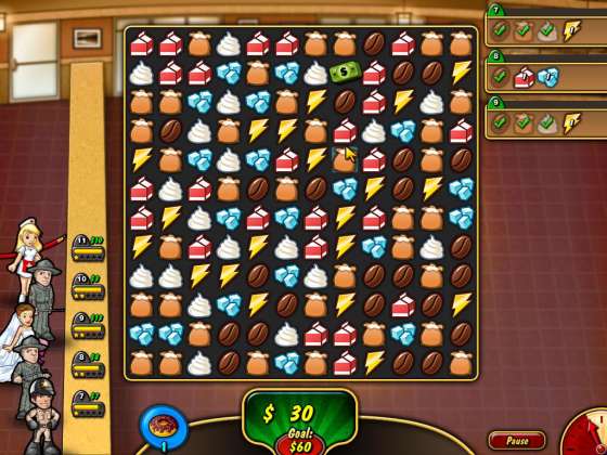 Coffee Rush 2 - продолжение игры Coffee Rush жанра match-3 с забавной графикой.