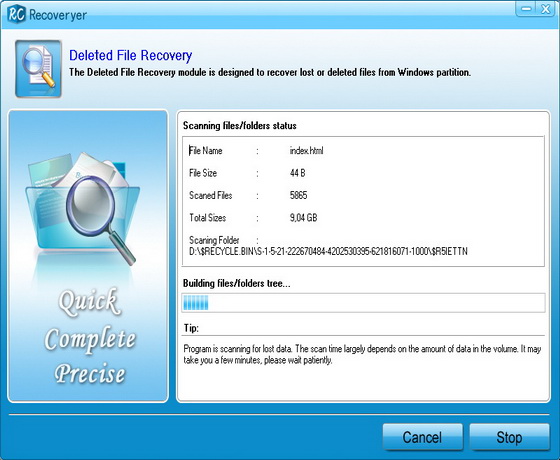 Recoveryer - программа для восстановления удаленных файлов с жестких дисков. Программа также поддерживает восстановление данных с внешних устройств (цифровые камеры, SD карты, флэш-диски, DV, и т.д.). С помощью данной программы можно восстановить файлы изображений, видео файлы, WinRAR архивы и другие.