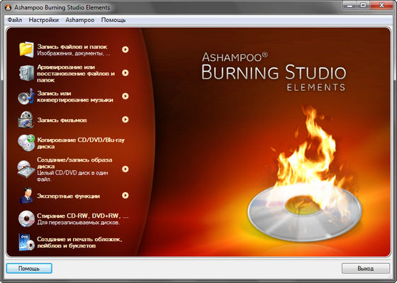 Ashampoo Burning Studio Elements - программа, с помощью которой Вы можете записать фильмы, музыку и данные - быстро и эффективно. Программное обеспечение с интуитивно понятным пользовательским интерфейсом предлагает Вам компактные функции для того, чтобы выполнять все задачи, касающиеся Ваших проектов записи – легко, создаёт диски данных, записывает резервные копии, музыкальные рипы, создаёт аудиокомпакт-диски или записывает уже существующие пленочные файлы на диски Blu-ray. С Ashampoo Burning Studio Elements Вы можете также записать HD - и full HD диски (720p and 1080p), если уже существующие файлы были сохранены в готовых папках. Аудиокомпакт-диски могут быть также эффективно и удобно рипованы с этим программным обеспечением. Интегрированный аудиоплеер позволяет Вам проиграть аудиофайлы и CD непосредственно, таким образом, Вы можете не открывать другой аудиоплеер, чтобы прослушать музыкальные заголовки. Ashampoo Burning StudioElements в один миг поможет разработать и напечатать покрытия, метки и буклеты в различных форматах. Запишите CD, DVD и Диски Blu-ray быстро и удобно!