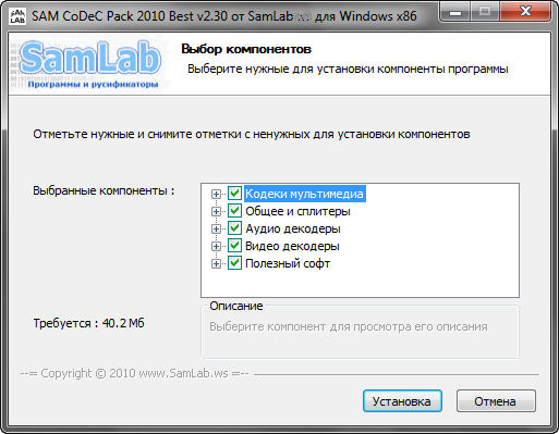Скачать набор кодеков SAM CoDeC Pack 2010 v2.30 x86 (10,38 МБ):
