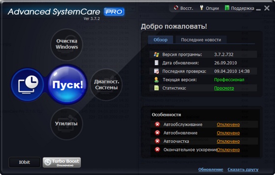 Advanced System Care Pro - профессиональная версия программы, включающая в себя множество модулей для оптимизации, настройки и повышения производительности компьютеров, находящихся под управлением операционными системами Windows.