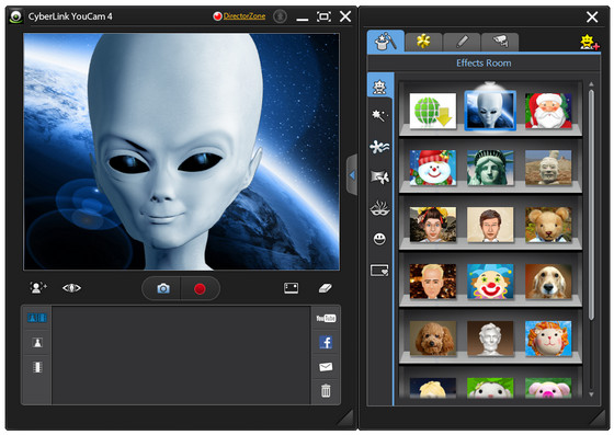 Применяйте эффекты сразу же во время захвата видео и фото. Загружайте ваши клипы прямо в YouTube. Сразу же отправляйте свои фото и видео друзьям по электронной почте. Двухрежимный пользовательский интерфейс упрощает использование программы CyberLink YouCam. В режиме мгновенного обмена сообщениями можно участвовать в многопользовательском видеосеансе с друзьями с помощью веб-камер, применяя мгновенные эффекты в режиме реального времени. Мгновенные эффекты позволяют добавлять рамки, фильтры, искажения и эмоциональные эффекты к видеоизображению с веб-камеры. Это позволяет дополнить видео забавными и креативными видеоэффектами.
