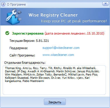 Скачать программу Wise Registry Cleaner Pro 5.81 Build 321 (2,24 МБ):