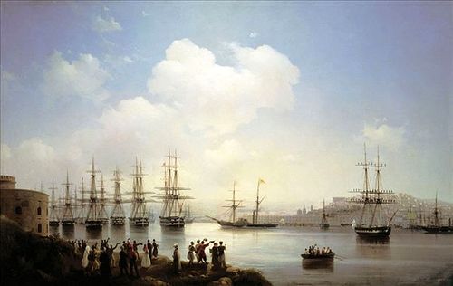 Вклад Айвазовского в батальную живопись значителен. Он запечатлел эпизоды Севастопольской обороны, неоднократно обращался к героическим подвигам русского военно-морского флота: “Каждая победа наших войск на суше или на море, — писал художник, — радует меня, как русского в душе, и дает мысль, как художнику изобразить ее на полотне...”