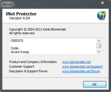 Blumentals iNet Protector - главная задача данной утилиты заключается в том, что она защищает паролем ваше интернет-соединение. Для того чтобы соединиться с сетью, вам будет необходимо ввести определенное кодовое слово, заданное до этого в данной программе. Кроме того, данная утилита позволяет задавать временные ограничения на доступ в интернет, что наверняка понравится родителям, которые не желают, чтобы их ребенок дни и ночи напролет проводил в чатах и прочих нежелательных ресурсах. Воспользоваться доступом в интернет в отсутствие владельца компьютера может кто угодно, чтобы избежать незапланированных денежных потерь и оставить всех с носом, мы рекомендуем воспользоваться данной программой.