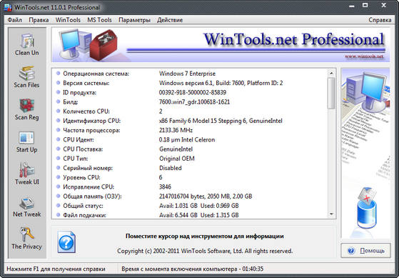 WinTools.net – набор инструментов для оптимизации операционной системы Windows. В состав программы входят компоненты для полного удаления нежелательных программ и «мертвых» ссылок реестра, а также для контроля процессов, настройки системы, интернет-соединений и интерфейса. Кроме того, имеются утилиты для надежного хранения конфиденциальной информации.