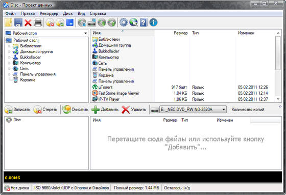 - запись любых данных на CD-R/CD-RW/DVD+R/DVD-R/DVD+RW/DVD-RW/DVD-RAM/BD/HD-DVD, включая двухслойные носители