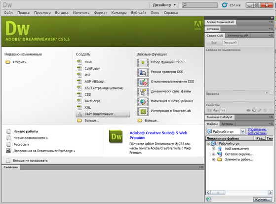 Adobe Dreamweaver CS5.5 - новая версия программы для создания и редактирования профессиональных веб-сайтов на базе отраслевых стандартов, которое позволяет создавать проекты для настольных ПК, смартфонов, планшетов и других устройств в визуальном режиме и с помощью кода. Дизайн при помощи инструментов проверки CSS, разработка сайтов для систем управления контентом, а также удобство и точность тестирования совместимости с браузерами благодаря интеграции с Adobe BrowserLab, новой онлайн-службой Adobe CS Live - это и есть новый Dreamweaver CS5.В Adobe Dreamweaver CS5 появилась поддержка популярных CMS (Joomla, WordPress и Drupal), функции подсказки по пользовательским классам PHP и по коду для отдельных сайтов и многое другое.