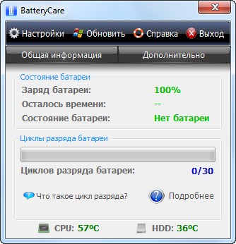 Кроме этого, BatteryCare производит мониторинг температур процессора и жесткого диска и выводит информацию об этом через иконку в системном лотке.