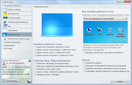 - Флажки, поля ввода, выпадающие списки и т.д. - это самый простой путь для настройки и оптимизации Windows 7. Больше никаких длинных ключей редактора реестра! Больше никаких тяжелых для запоминания системных команд.