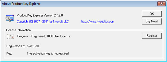 Product Key Explorer мощная утилита, которая может помочь восстановить утерянные ключи для многих популярных программных продуктов (в том числе Microsoft Windows 7, XP, Vista, Office, Adobe CS5, CS4, CS3 и т.д.). Product Key Explorer автоматически восстанавливает серийные ключи от существующей системы и с сетевых компьютеров.