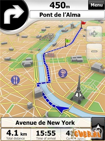 Главная особенность новой версии — трехмерные изображения зданий, рельефа местности и других объектов. Программа позволяет поворачивать карту на 360 градусов для более удобного отображения на экране навигатора.