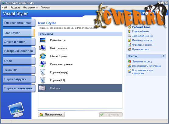 Преобразите свой Рабочий стол с помощью Visual Styler! Эта программа дает Вам шанс полностью изменить внешний вид Рабочего стола с помощью множества мощных инструментов. Забудьте про унылый выбор тем, что предоставляет Вам Windows, и разнообразьте внешний вид системы с помощью сотен новых тем, созданных другими людьми. Вы можете быть уверены, что найдете именно то, что вам нужно. С помощью простых и удобных средств вы сможете изменить более 80 системных и множество других иконок; использовать новые темы и стили для Windows XP, заменить скучный экран загрузки и настроить экран приветствия с помощью сотен тем, доступных теперь в интернете. Программа содержит другие интересные функции, такие как управления обоями, возможность создания своих пакетов иконок, автоматическая смена обоев при загрузке Windows и Мастер поиска элементов оформления с последующей автоматической установкой.