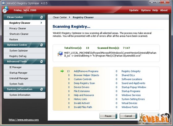 Программа для устранения ошибок в работе вашего компьютера, а именно в реестре. Registry Optimizer обезопасит ОС от проявления внутренних ошибок в работе Реестра, позволяет создать копии системных файлов, восстановить Реестр в случае сбоя ОС и удалить из него ошибочные или незадействованные записи. Вы, можете установить автоматический сохранение вашей информации для безопасности в работе ПК, бывают случаи отключения питания и другие возможный неполадки. Также WinASO Registry Optimizer, поможет в установках Internet Explorer, включая IE домашнею страницу, IE название окон.