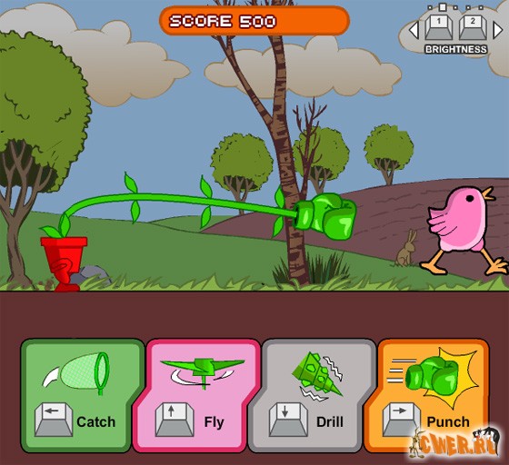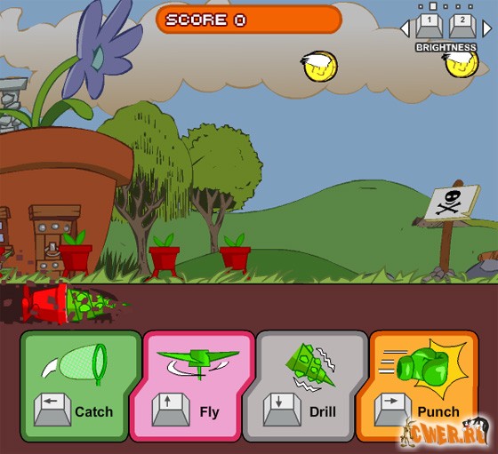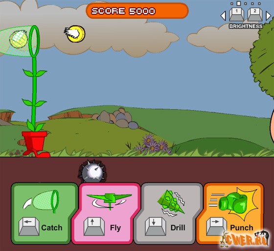 Очень весёлая и динамичная флеш-аркада. Вы управляете растением, передвигающимся по живописной местности в... цветочном горшке, умеющем ходить, летать и даже зарываться в землю! Собираете различные бонусы и сметаете все препятствия на своём пути. В качестве фона звучит классическая музыка. При наборе определённого количества очков, музыкальный трек можно поменять.