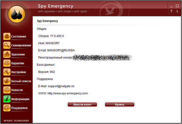 Скачать программу NETGATE Spy Emergency 17.0.405.0 (24,88 МБ):