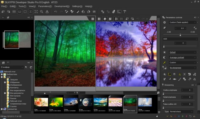 SILKYPIX Developer Studio - профессиональный редактор для обработки и конвертации фотографий в различных форматах, в том числе и RAW. Редактор также поможет настроить цветовой баланс, яркость, контраст, тон, насыщенность, покажет EXIF информацию выбранной фотографии и многое другое.
