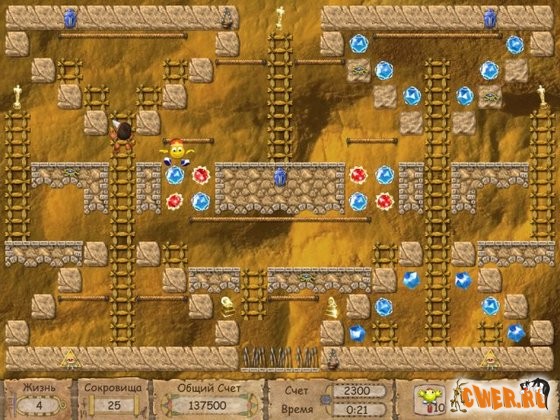 Храбрые кладоискатели Вовочка и Машенька отправляются за сокровищами лабиринтов, которые охраняют забавные (но крайне опасные!) монстры. Пройти через 100 аркадных уровней и собрать все драгоценности вам поможет специальное снаряжение, которым заблаговременно запаслись отважные путешественники.