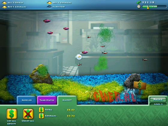 Разводите в своём аквариуме экзотических рыбок, кормите их, меняйте им воду, следите чтобы они не съели друг друга, покупайте улучшения и растения для аквариума. В общем станьте самым успешным специализированным на рыбках зоомагазином. Тайм-менеджмент симулятор.